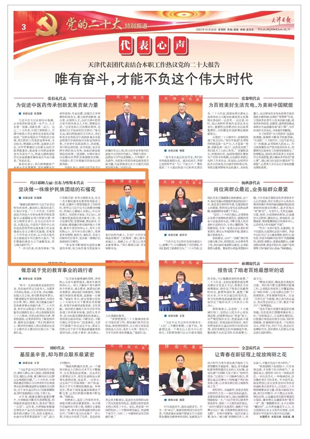 《天津日报》:天津代表团代表结合本职工作热议党的二十大报告 唯有奋斗,才能不负这个伟大时代